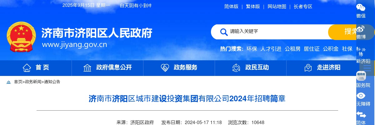 原标题:济南市济阳区城市建设投资集团有限公司2024年招聘简章