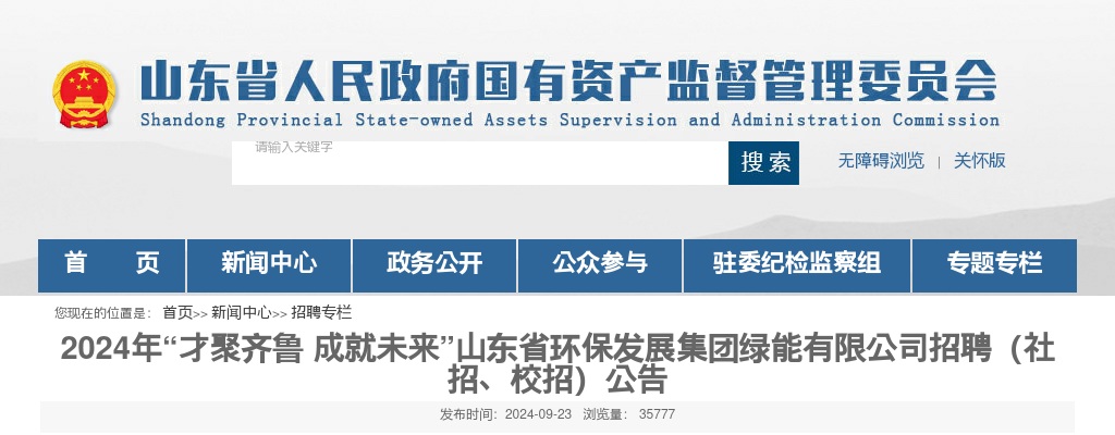 原标题:2024年“才聚齐鲁 成就未来”山东省环保发展集团绿能有限公司招聘(社招、校招)公告