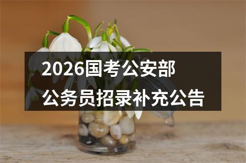 按照中央机关及其直属机构2026年度考试录用和公开遴选公务员工作部署安排,根据《人民警察法》《关于加强公安机关人民警察招录工作的意见》等法规政策规定,现就做好公安部及其直属机构2026年度公务员招录工作有关事项补充公告如下:
