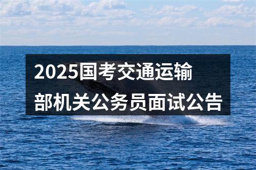 声明:专注 2025国考交通运输部机关公务员面试公告 相关岗位分析;专业指导面试技巧;保障就业成功概率。