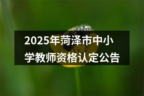 根据教育部统一部署和我省工作安排,现将2025年菏泽市中小学教师资格认定工作有关事项公告如下: