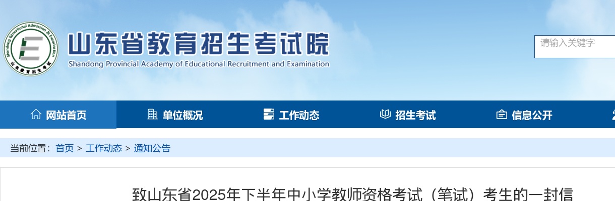 原标题:致山东省2025年下半年中小学教师资格考试(笔试)考生的一封信