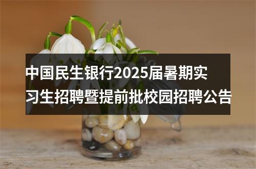 原标题:中国民生银行2025届暑期实习生招聘暨提前批校园招聘公告