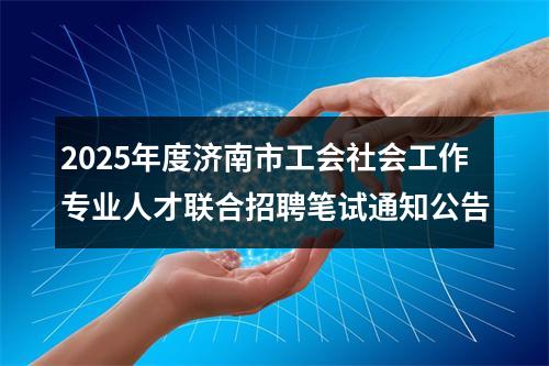 原标题:2025年度济南市工会社会工作专业人才联合招聘笔试通知公告