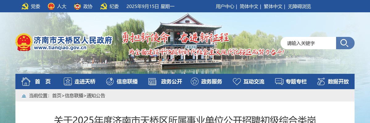 原标题:关于2025年度济南市天桥区所属事业单位公开招聘初级综合类岗位人员面试人选资格复审的公告