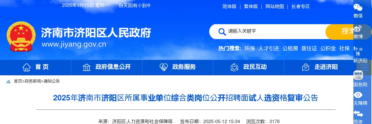 原标题:2025年济南市济阳区所属事业单位综合类岗位公开招聘面试人选资格复审公告