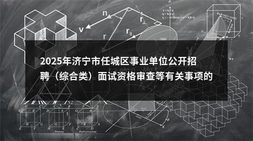 原标题:关于2025年济宁市任城区事业单位公开招聘(综合类)面试资格审查等有关事项的公告