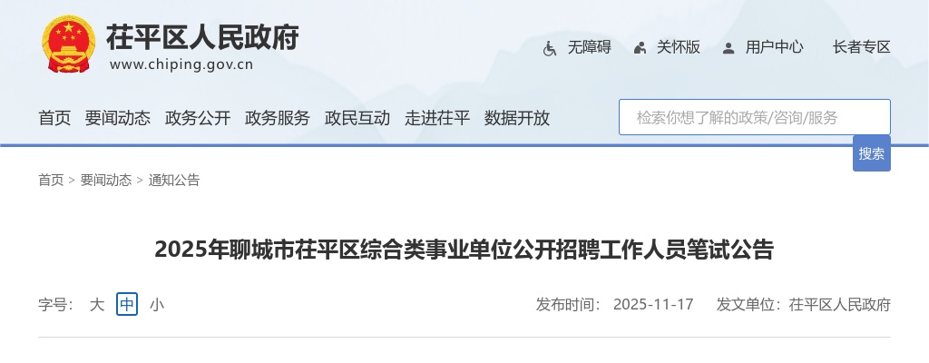 原标题:2025年聊城市茌平区综合类事业单位公开招聘工作人员笔试公告